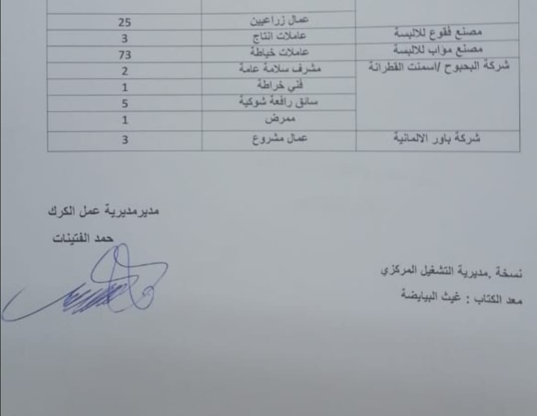 • مديرية عمل الكرك تعلن عن توفر 110 فرص عمل حاليا في القطاع الخاص وتدعو الراغبين بالعمل بمراجعتها