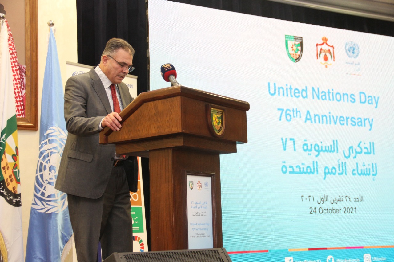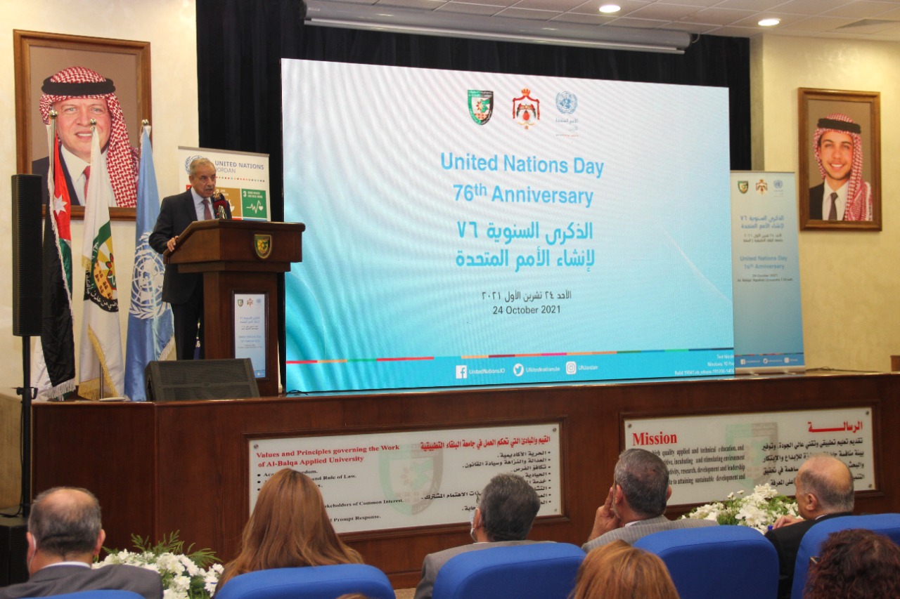 فريق الأمم المتحدة في الأردن يحتفل بالذكرى 76 لإنشاء الأمم المتحدة في " جامعة البلقاء التطبيقية "