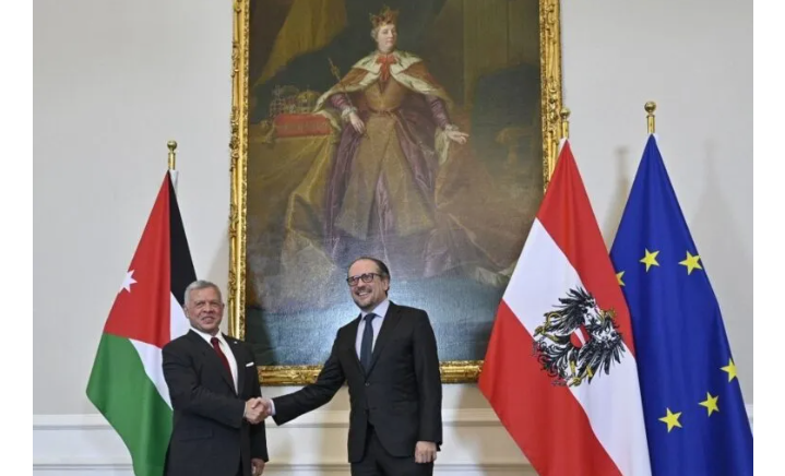 استهل جلالة الملك عبدالله الثاني جولته الأوروبية من النمسا بلقاء الرئيس النمساوي ألكسندر فان دير بيلين، الاثنين، تناول علاقات الصداقة بين البلدين، وسبل توسيع التعاون في المجالات الاقتصادية والتجارية والعسكرية.