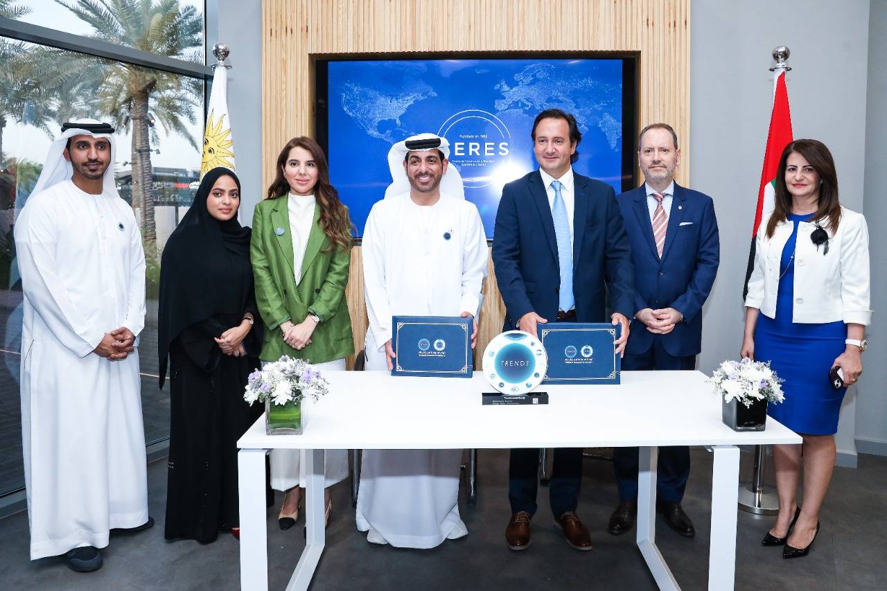 تم توقيع الاتفاقية في جناح الأوروجواي في معرض إكسبو 2020 دبي، بحضور سعادة ألفارو كارلو سيرياني سفير الأوروجواي لدى الإمارات، حيث وقَّعها عن مركز "تريندز " الدكتور محمد عبدالله العلي، الرئيس التنفيذي؛ فيما وقعها عن مركز (CERES) الدكتور إجناسيو موينو – الرئيس التنفيذي للمركز، بحضور السيدة باربرا الدبيسي، رئيس جناح أوروجواي في إكسبو، ومسؤولة الشؤون التجارية بالسفارة، ووفد رفيع المستوى من "تريندز" .