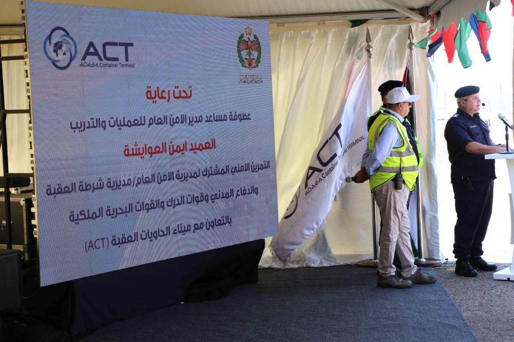 حيث ابتدأ الاحتفال بتنفيذ تمرين سلامة عامة وتمرين أمني شامل مشترك، بالتعاون مع مديرية شرطة العقبة والقوات البحرية الملكية والأجهزة الأمنية الأخرى، بهدف قياس سرعة الاستجابة للأحداث الطارئة، ورفع كفاءة وتطوير منظومة فريق الأمن والسلامة العامة والصحة والبيئة داخل الشركة وميناء الحاويات، فضلاً عن تفعيل آلية القيادة والسيطرة والتعاون المشترك بين شركة ميناء حاويات العقبة والجهات الأمنية المشتركة، والتعرف على أماكن الميناء المختلفة ودرجات الخطورة التي تنطوي عليها العمليات المينائية، وتحديث خطة الاتصال والتواصل بين جميع الأطراف، وتحديد مدى القدرة على التعامل مع حادث كبير من عدّة أطراف مرّة واحدة.