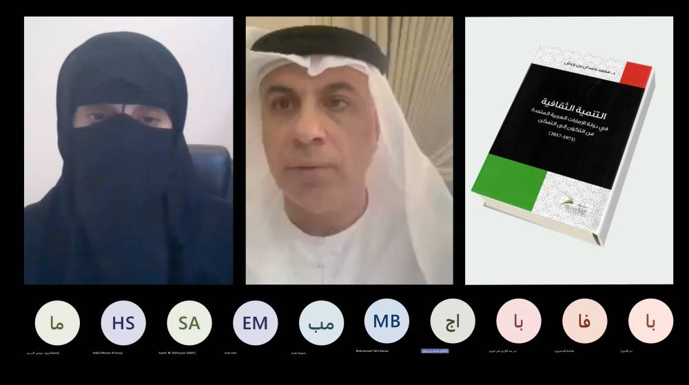 نظم نادي تراث الإمارات بالتعاون مع لجنة إدارة المهرجانات والبرامج الثقافية والتراثية، محاضرة افتراضية أمس "الأربعاء" ضمن برنامج «سلسلة قراءة في إصدارات إماراتية»، قدمها الدكتور محمد حمدان بن جرش الكاتب والباحث الإماراتي، وتناول فيها كتابه «التنمية الثقافية في دولة الإمارات العربية المتحدة من التكون إلى التمكن 1971-2017» الصادر عن منشورات القاسمي في عام 2019.